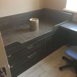 Bedroom and study in the same house, Study in Scope grey Avola and bedroom in High gloss light grey with white surround